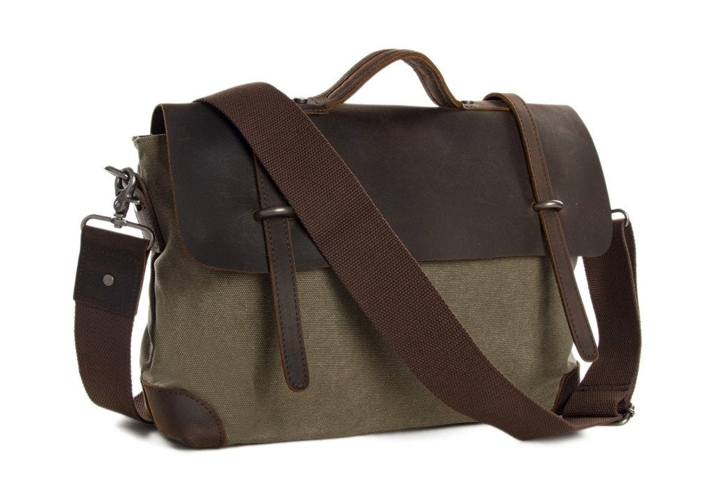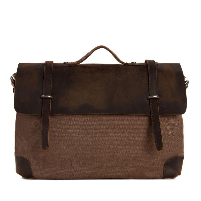Canvas Leather Briefcase Messenger Bag Shoulder Bag Laptop Bag 6896